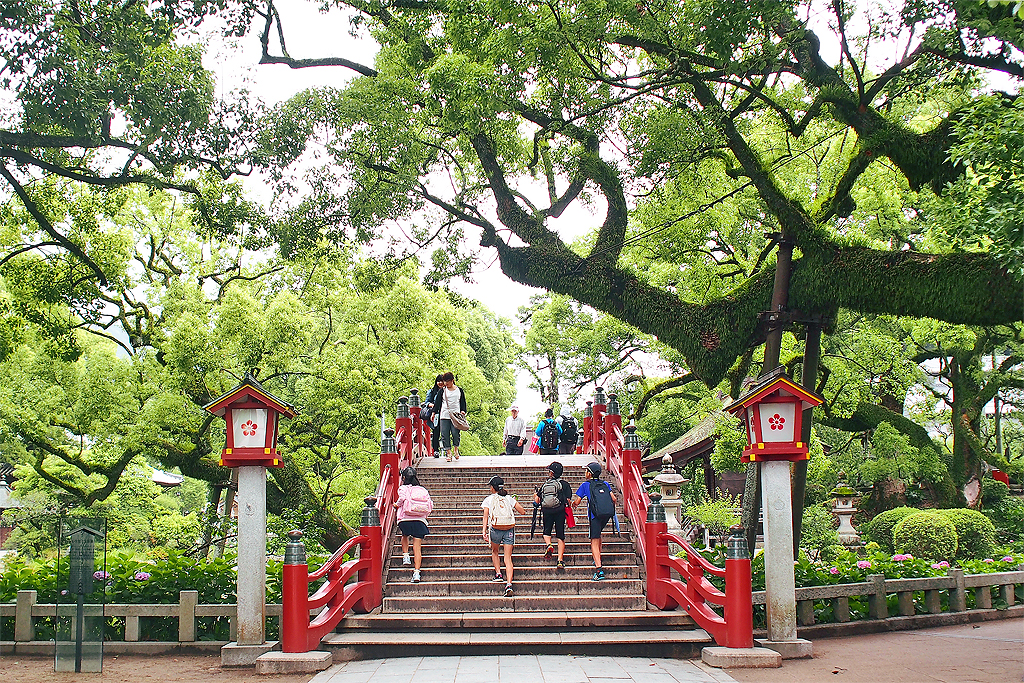 Dazaifu is said to be the most popular Japanese shrine in Kyushu area. Every year, here has 8.5 million visitors. Dazaifu worship the god of knowledge, so many students visit here to pray for good luck on studies or tests.