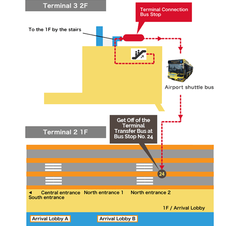 2.Make your way to Terminal 2. (There is a free terminal transfer bus offered by the airport)